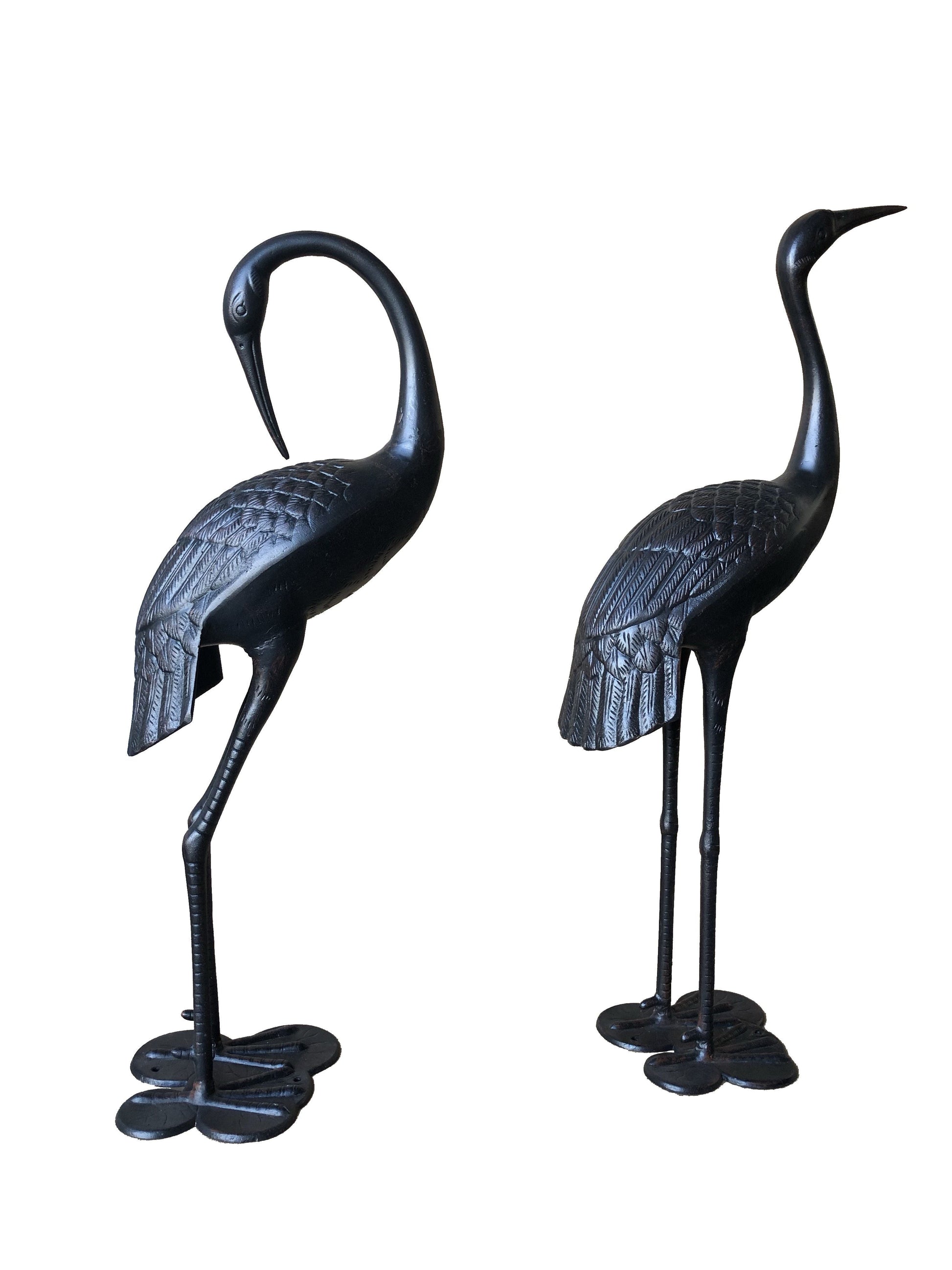 2 Piece Crane Couple Metal Statue Set