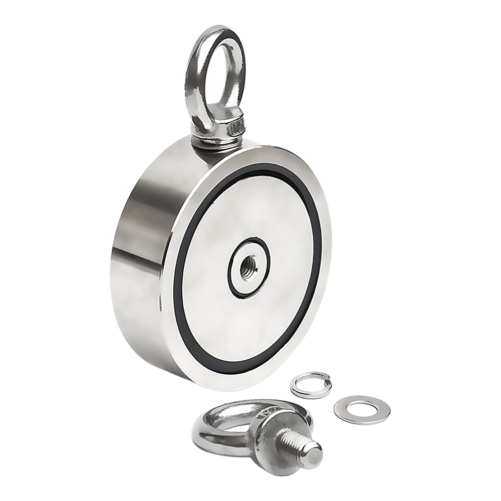 Looking for a two-sided magnet with the power to fish metallic objects from the water or buried in the ground? This 700-kilogramme-capacity neodymium magnet from Randy Travis Machinery provides two-sided pulling power with 350-kilogram pulling forces on each side.