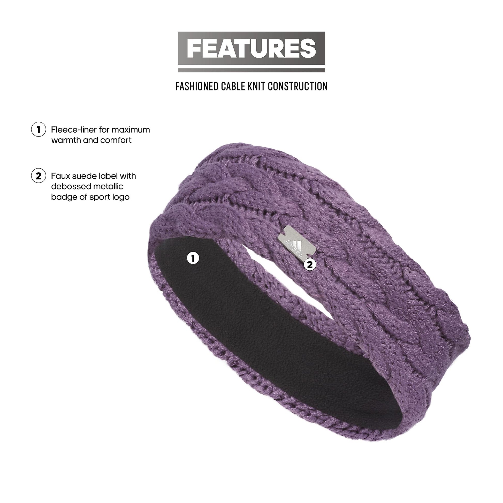 Keep your hair back and your eyes clear when you wear this cable knit headband. It's lined with fleece for an extra cozy, soft feel. A faux suede label features a debossed metallic adidas Badge of Sport.