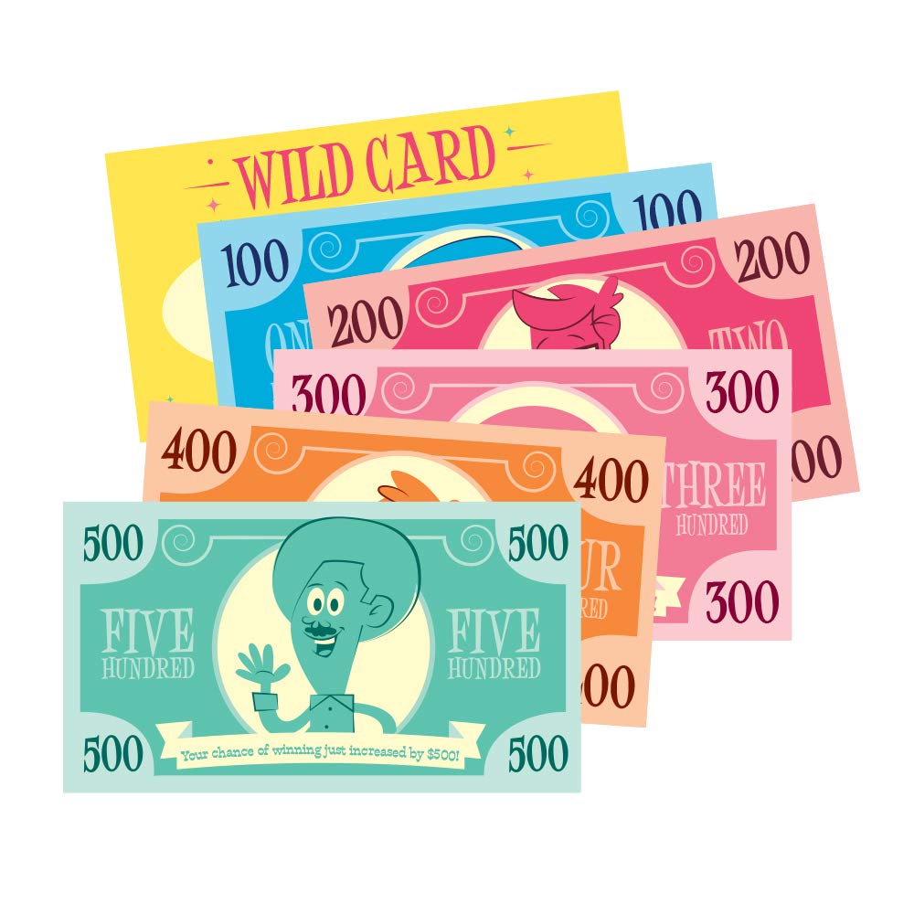 HOW DO YOU PLAY? - On every turn, Player 1 reads aloud one of the 180 fun, creative, personal and "loaded questions". Everyone else writes down a personal answer to the question on their answer sheet. Any answer will do! The player to the right of Player 1 collects, shuffles and reads aloud the answers. Player One picks his/her favorite answer and the has to guess which player said which answer. Player 1 collects one money card for every correct match. The player who wrote the favorite answer also picks a money card. Every money card has a dollar value of $100-$500, and wild cards are mixed in