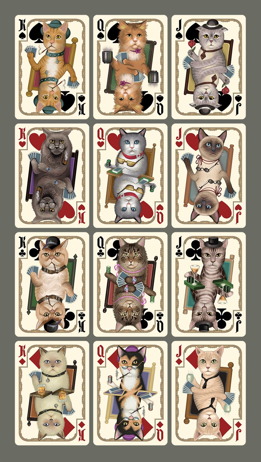 Can a cat pull off a poker face? Sure, but watch for a slight slant to the ears. Poker Cats V2 Playing Cards features adorable kitties engaging in a serious game of poker (why should dogs have all the fun?). Look for your cat's likeness in this fun, fully hand-drawn deck and you too can play poker with the cats!