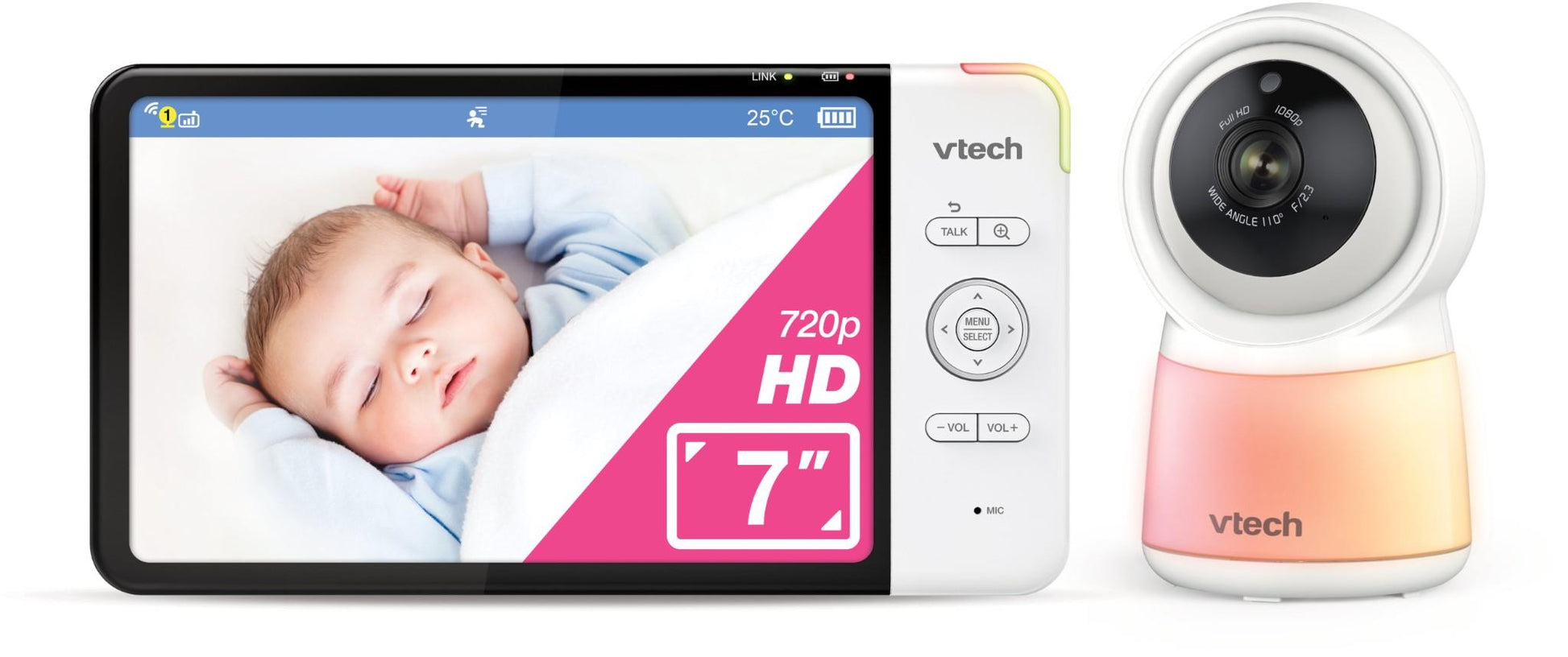 7” HD parent unit with 1080p HD camera with automatic night vision. wide angle viewing. multi-colour night light. 8x local digital zoom and 10x remote digital zoom.